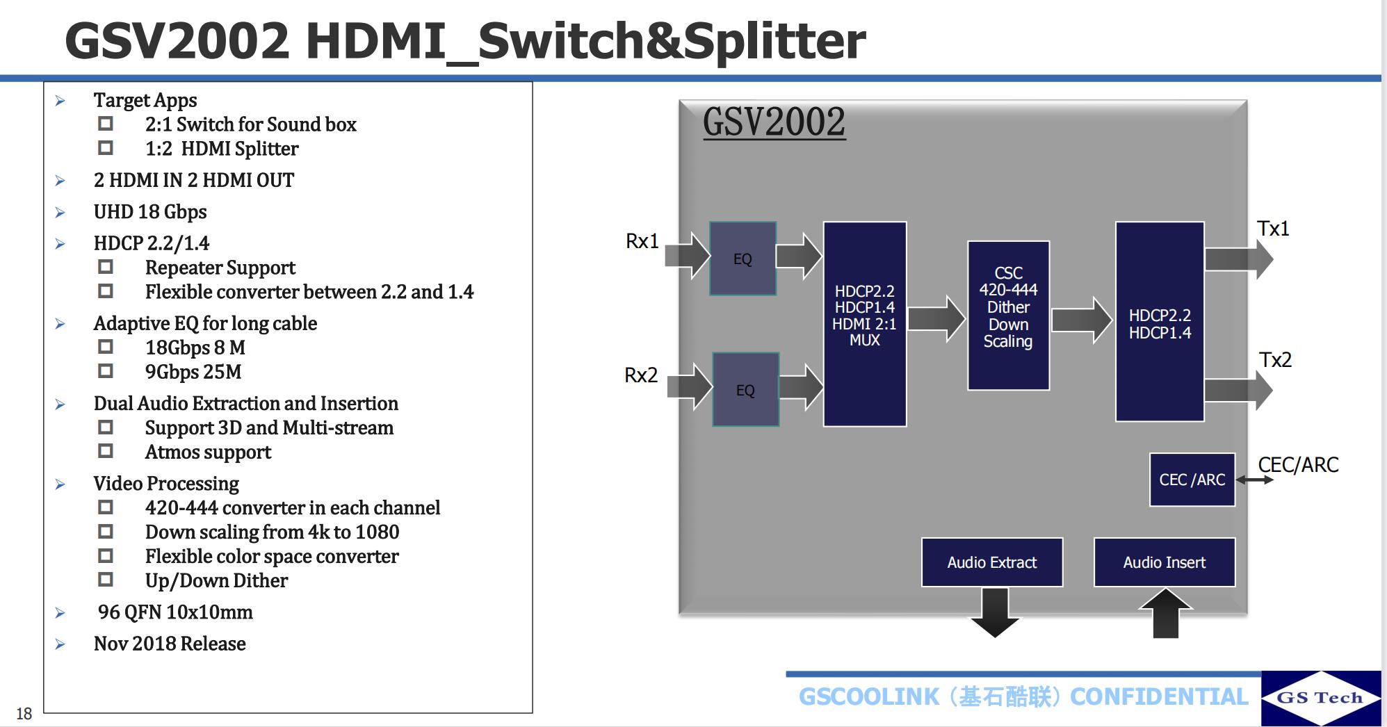 GSV2002_Gscoolink_HDMI2.0分配器/切換器芯片—昂緯科技