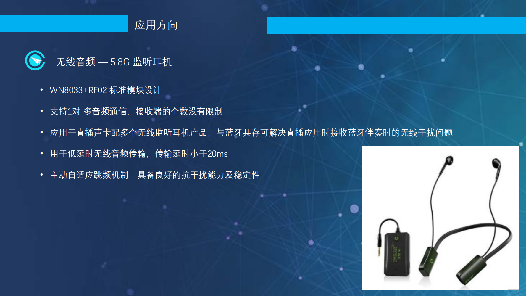 5.8G 監(jiān)聽耳機方案_持1對多音頻通信