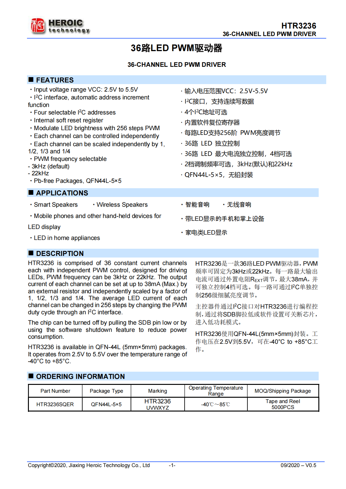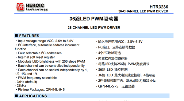 HTR3236_36路LED PWM驅(qū)動(dòng)器
