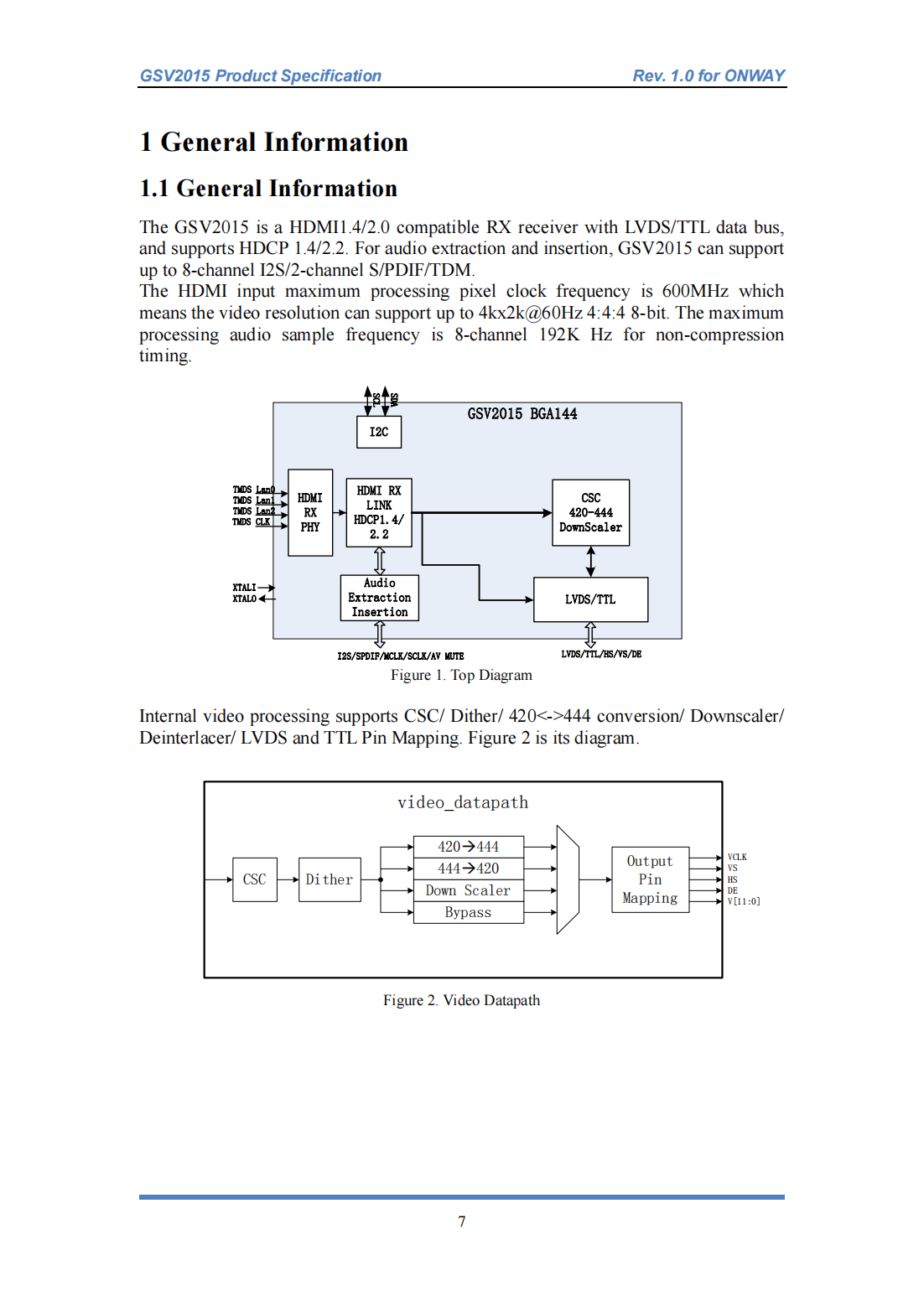 GSV2015是具有LVDS/TTL數(shù)據(jù)總線的HDMI1.4/2.0兼容RX接收器, 并支持HDCP 1.4/2.2。對于音頻提取和插入,GSV2015可以支持 高達8通道I2S,2通道S/PDIF/TDM。