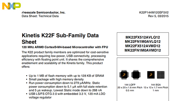 The K22 product family members are optimized for cost-sensitive applications requiring low-power, USB connectivity, processing efficiency with floating point unit. It shares the comprehensive enablement and scalability of the Kinetis family. This product offers:
