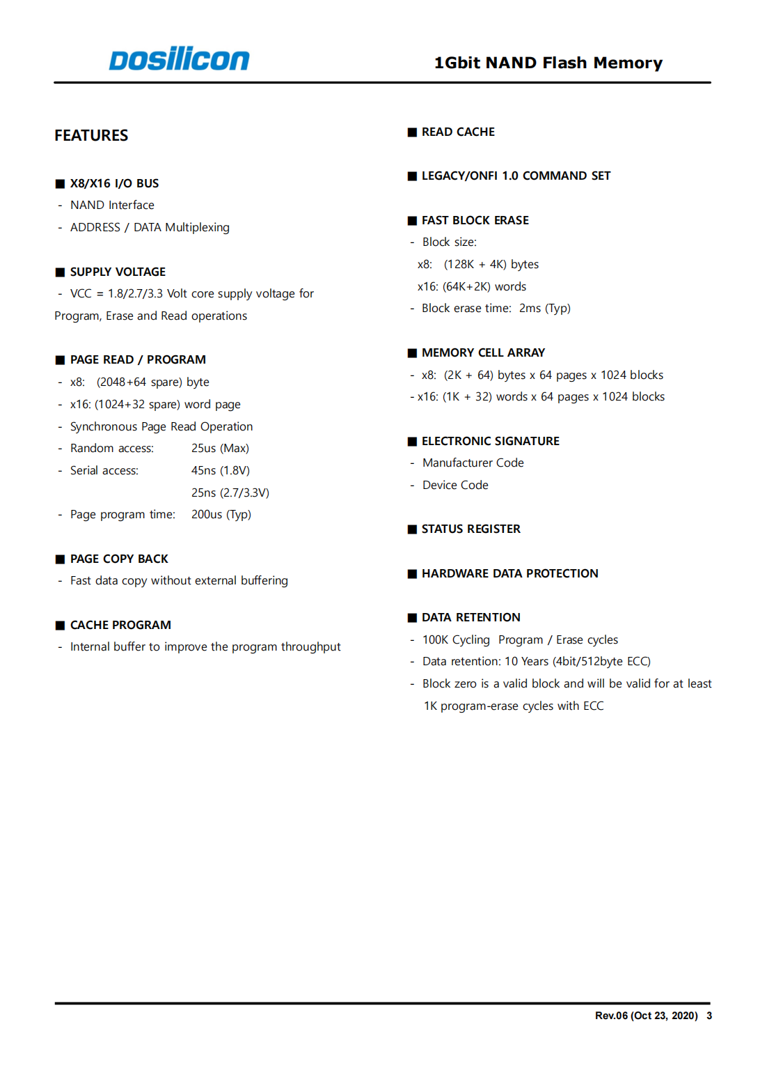 This device supports ONFI 1.0 specification.