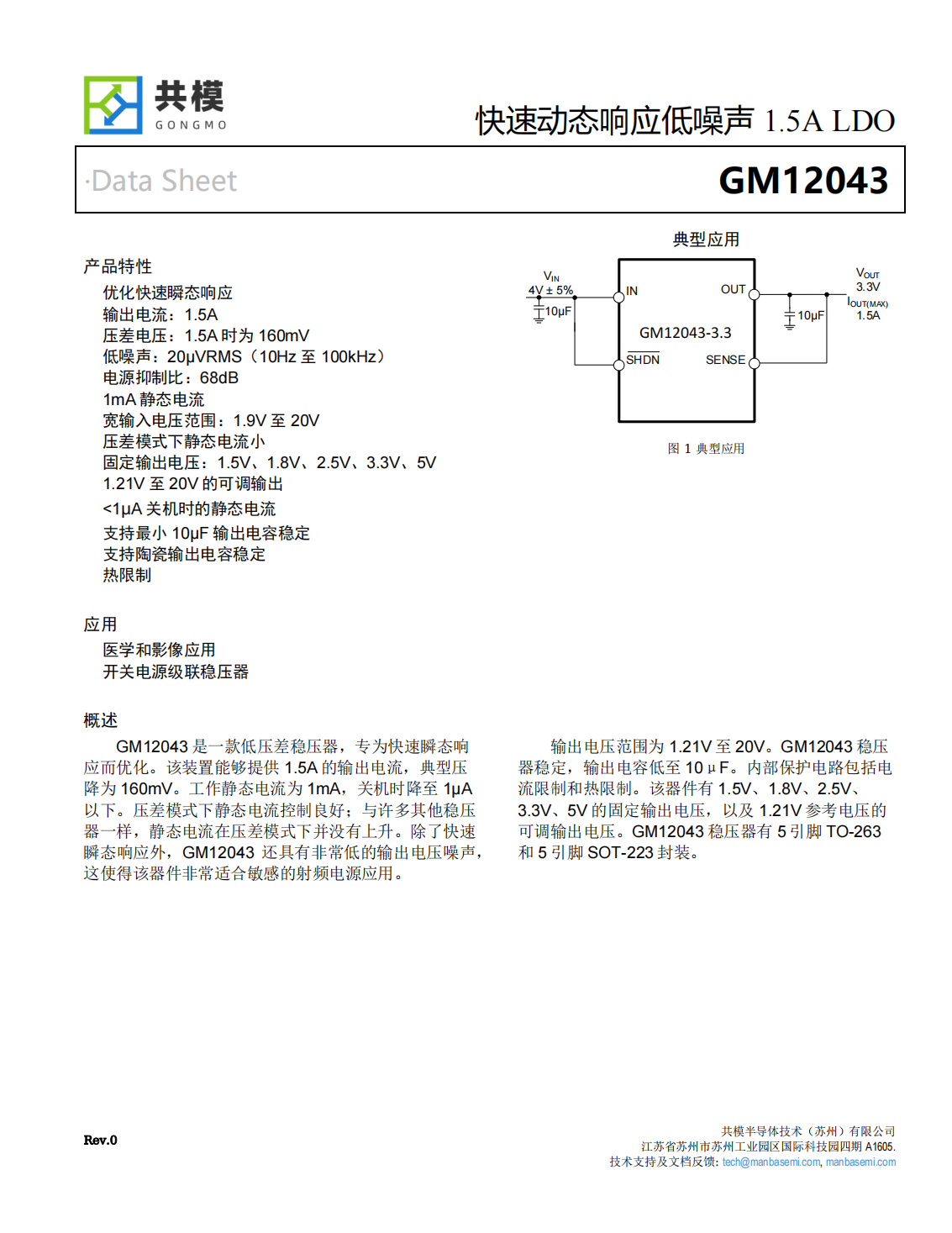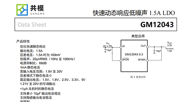 GM12043是一款低壓差穩(wěn)壓器,專為快速瞬態(tài)響應(yīng)而優(yōu)化。該裝置能夠提供1.5A的輸出電流,典型壓降為160mV。工作靜態(tài)電流為1mA,關(guān)機(jī)時(shí)降至1μA以下。壓差模式下靜態(tài)電流控制良好;與許多其他穩(wěn)壓器一樣,靜態(tài)電流在壓差模式下并沒有上升。除了快速瞬態(tài)響應(yīng)外,GM12043還具有非常低的輸出電壓噪聲,這使得該器件非常適合敏感的射頻電源應(yīng)用。輸出電壓范圍為1.21V至20V。GM12043穩(wěn)壓器穩(wěn)定,輸出電容低至10μF。內(nèi)部保護(hù)電路包括電流限制和熱限制。該器件有1.5V、1.8V、2.5V、3.3V、5V的固定輸出電壓,以及1.21V參考電壓的可調(diào)輸出電壓。GM12043穩(wěn)壓器有5引腳TO-263和5引腳SOT-223封裝。