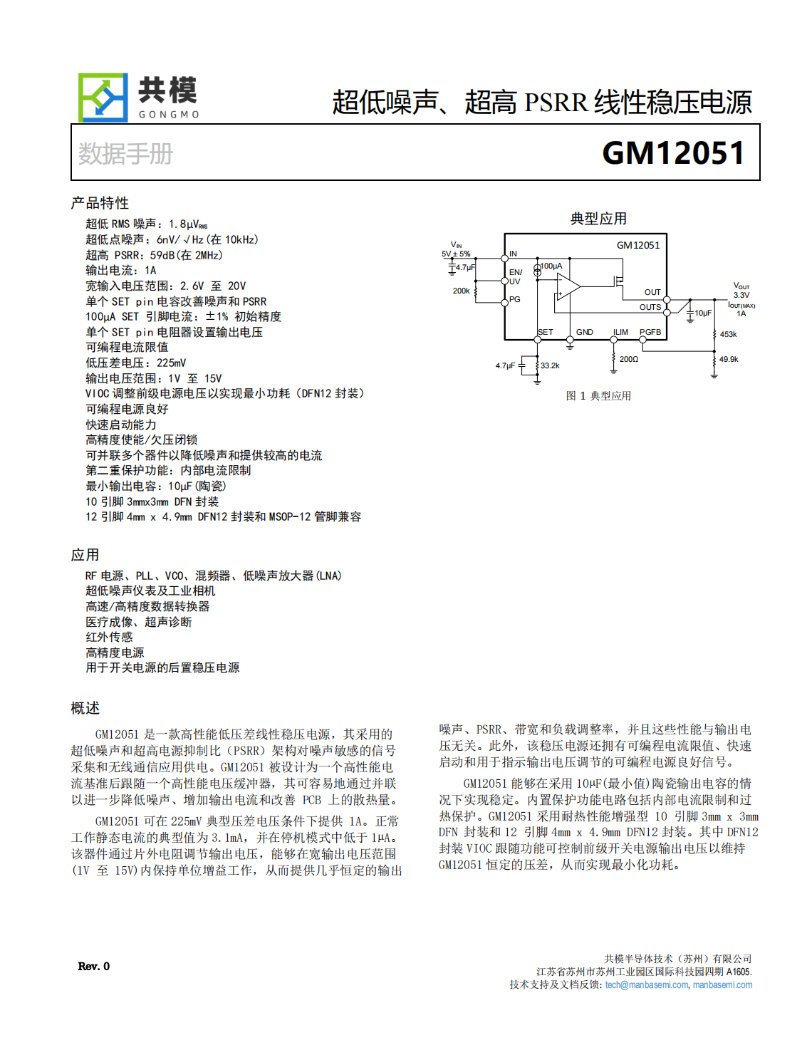 GM12051是一款高性能低壓差線性穩(wěn)壓電源,其采用的超低噪聲和超高電源抑制比(PSRR)架構(gòu)對噪聲敏感的信號采集和無線通信應用供電。GM12051被設計為一個高性能電流基準后跟隨一個高性能電壓緩沖器,其可容易地通過并聯(lián)以進一步降低噪聲、增加輸出電流和改善PCB上的散熱量。