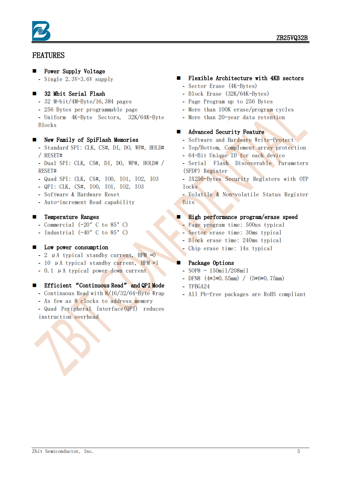 ZB25VQ32BWIG_ DFN8(6*5) 恒爍3.3V 4M Flash