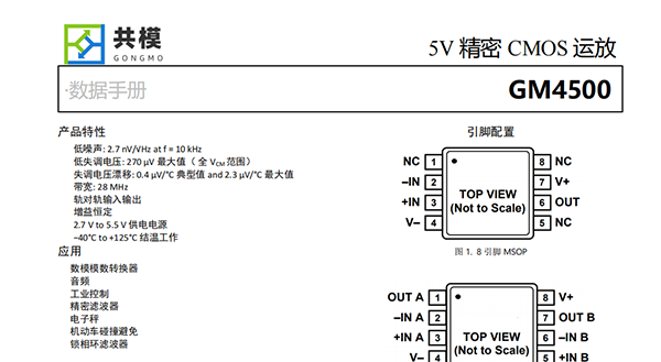 GM4500/GM45002是工業(yè)應(yīng)用中噪聲最低的精確CMOS放大器,實現(xiàn)了高直流精度和功耗的均衡性。