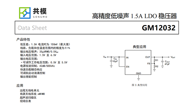 GM12032是一款低噪聲、低壓差線性穩(wěn)壓器(LDO),可提供1.5A輸出電流,最大壓降僅為160mV。該器件提供兩種輸出電壓范圍。GM12032的輸出電壓可通過外部電阻分壓器在0.5V至5.5V范圍內(nèi)進行調(diào)節(jié)。