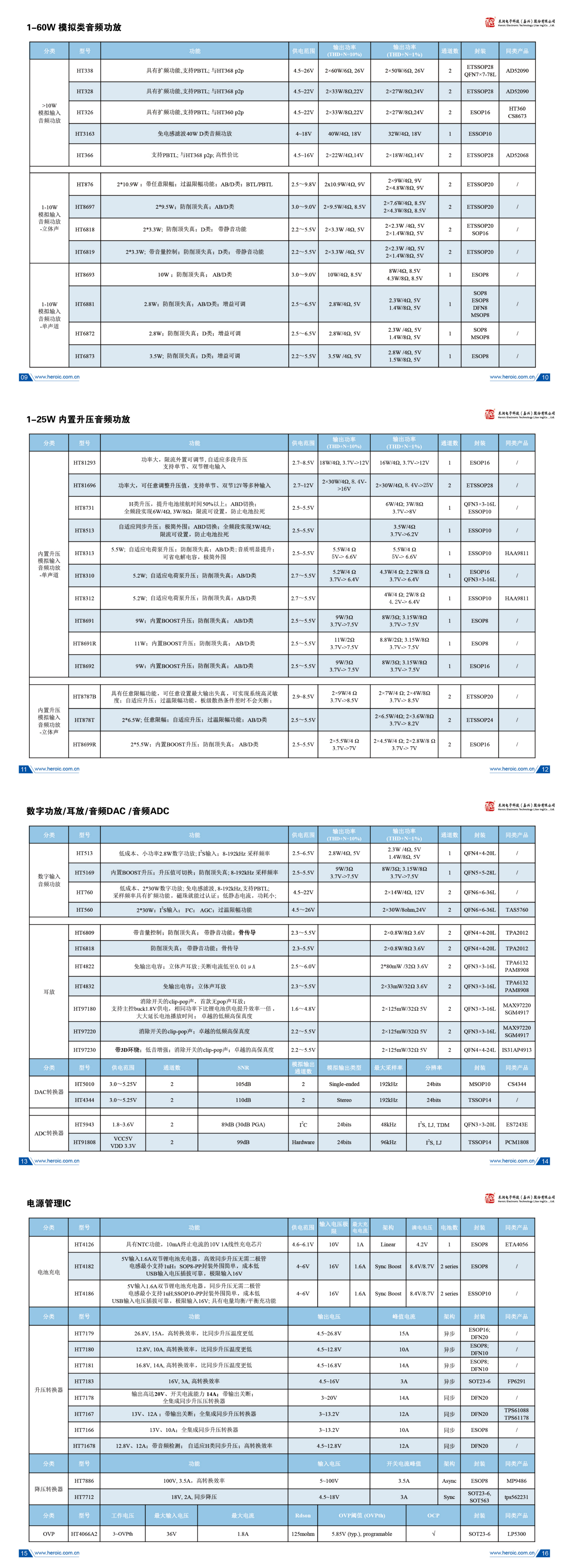 數(shù)字功放,耳放,音頻DAC,音頻ADC芯片