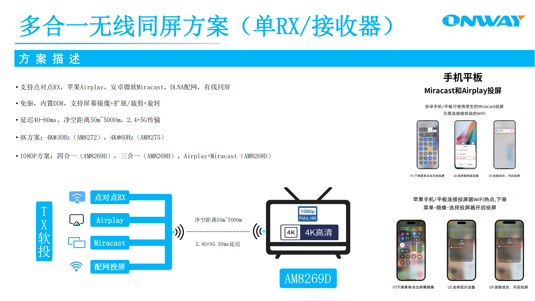 多合一無線同屏方案(單RX/接收器)